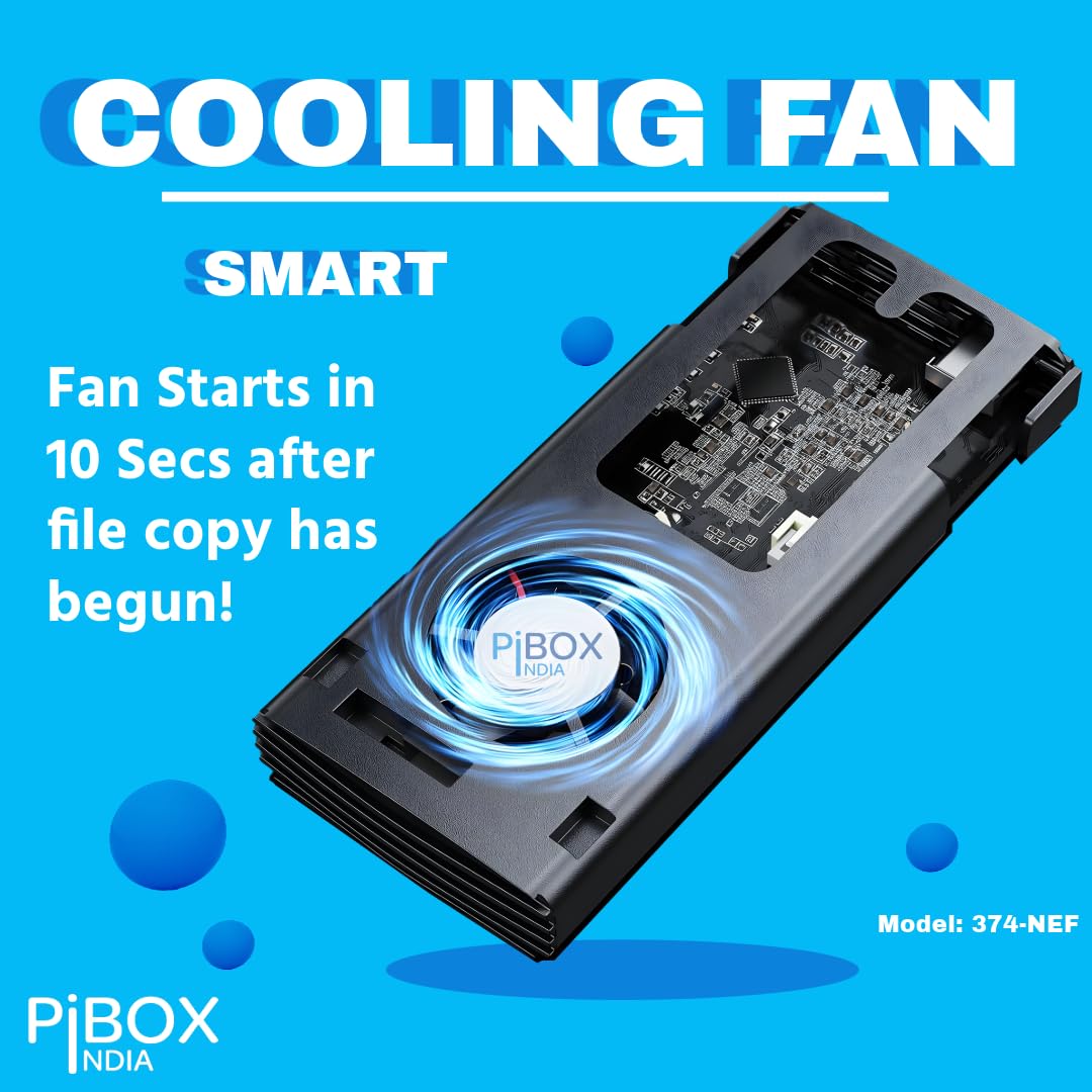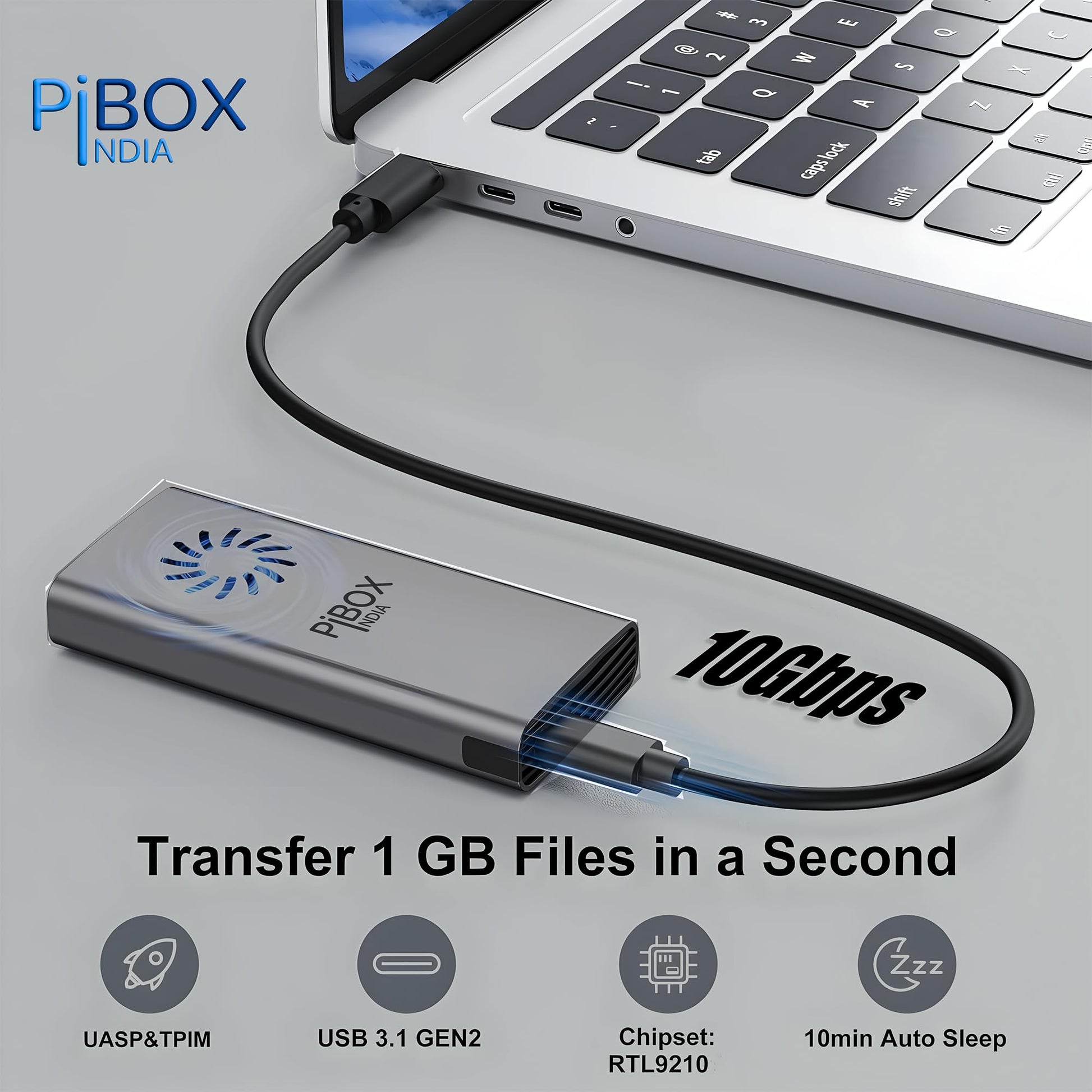 NVME M2 Enclosure Fan, PiBOX India NVMe SSD Enclosure - USB 3.2 10Gbps, Tool-Free M.2 NVMe Case, PCI-E NVMe Reader, USB-C, Supports M & B&M Keys, 2230/2242/2260/2280 SSDs Powerful -RTL9210
