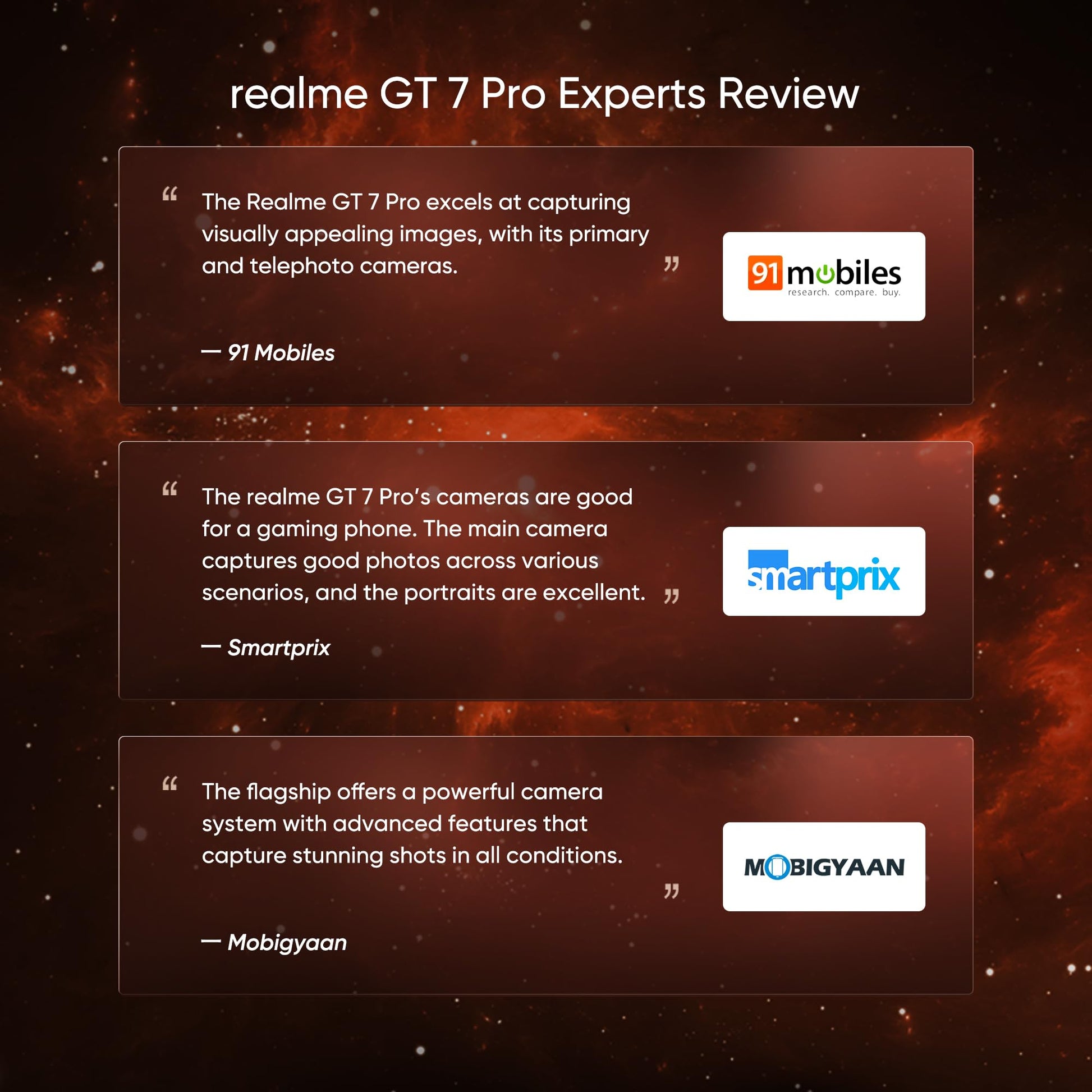 - RealWorld Eco² OLED Plus Display: realme GT 7 Pro brings you a high-end RealWorld Eco² OLED Plus screen, a natural eye-protection display that ensures vibrant, colorful content is presented with ultra-clear clarity, even when viewed directly under bright sunlight, offering an ideal viewing experience in any environment.