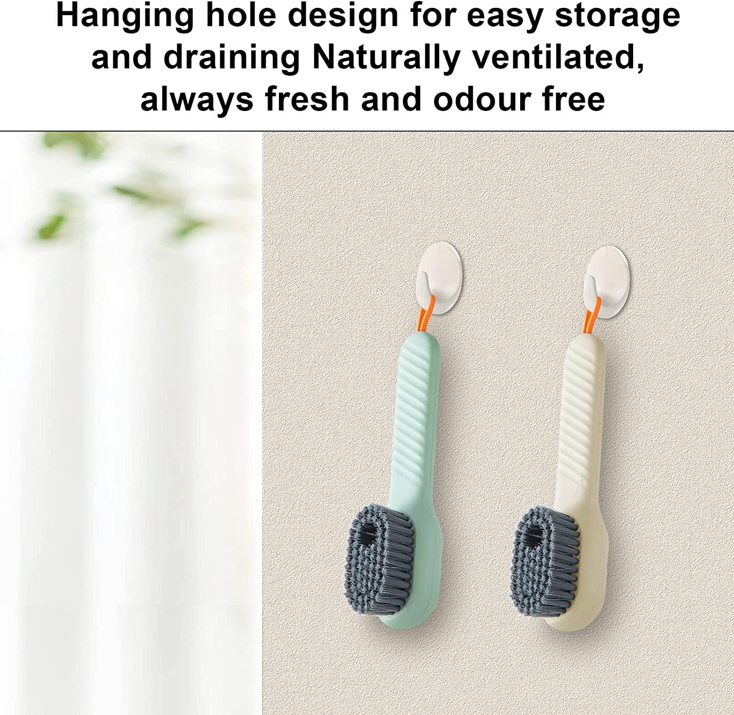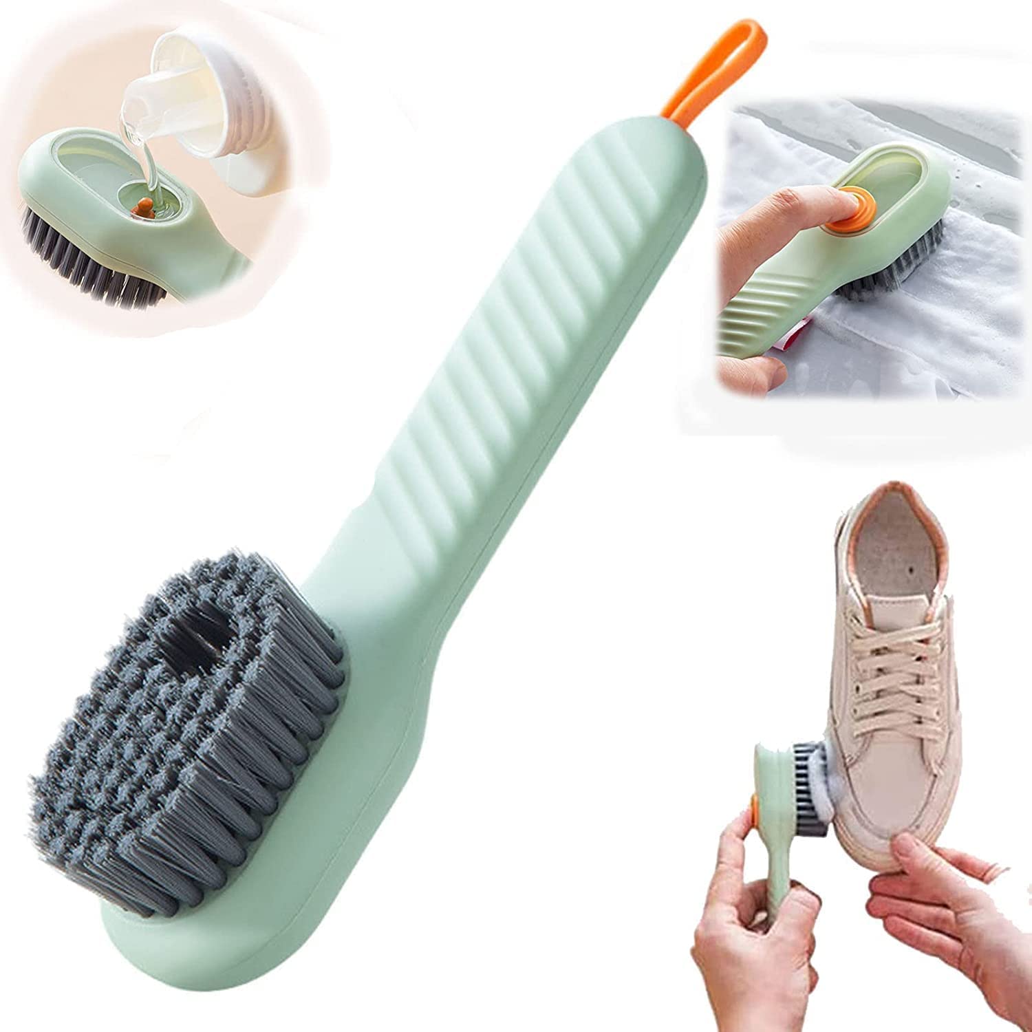 - Premium Design: Our Shoe Brush Cleaner has large space for liquid soap with press-type dispensing button, the silicone wire makes it is easy to hang well after use. The dense durable bristle dries more faster hygenically.