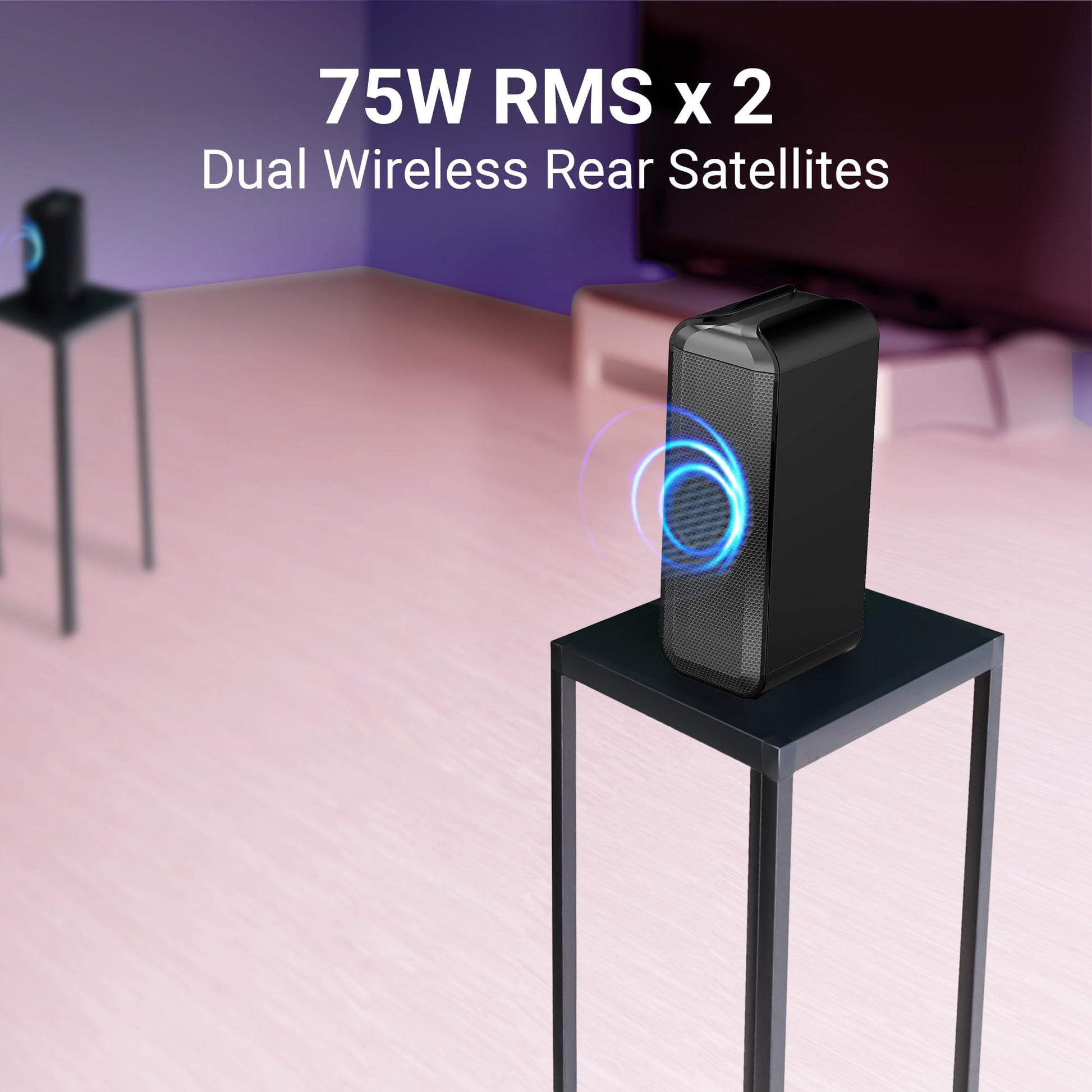 - Deep bass: The 16.51 cm driver subwoofer delivers a 225W output, enriching the bass for a richer sound quality. Enjoy true-to-life audio with the dual-wireless satellites with dual drivers delivering 150W output.